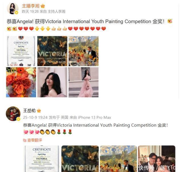 一个经济能力强的家庭,对于孩子教育的投入与培养,跟一般的家庭总是不同的。 你看,自小就被李湘送到英国留学的王诗龄,她站的起点就比普通家庭的孩子要高出很多。 10月9日,李湘和前夫王岳伦,同时在社交平台上发布喜讯,庆祝他们的女儿王诗龄获得VictoriaInternationalYouthPaintingCompetition(维多利亚国际青少年绘画大赛)金奖,并晒出作品和相关证书。
