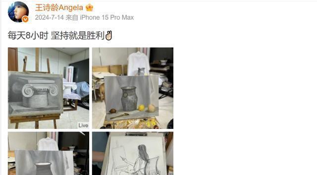 王诗龄虽然有个名声显著的主持人妈妈李湘,但她的爸爸王岳伦却是毕业于中央美术学院油画专业,算是科班出身,而她的爷爷更是著名的画家,曾师从吴冠中、卫天霖等艺术大师。 可见,王诗龄的家庭氛围,就是充满着艺术气氛的。 据说从小,王诗龄就在爷爷跟前学画,小小年龄就显露天赋。 再加上,李湘有很敏锐的前瞻性目光,在多年前就把年仅13岁的王诗龄送到英国留学。 而在英国,王诗龄每天学画画的时间都在8个小时以上,很努力,很勤奋,当然,画画功力也很快见长。